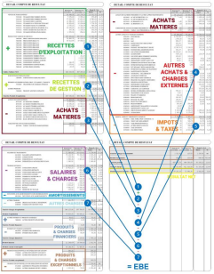 - À partir de la valeur ajoutée : EBE = valeur ajoutée - impôts et taxes - charges de personnel.