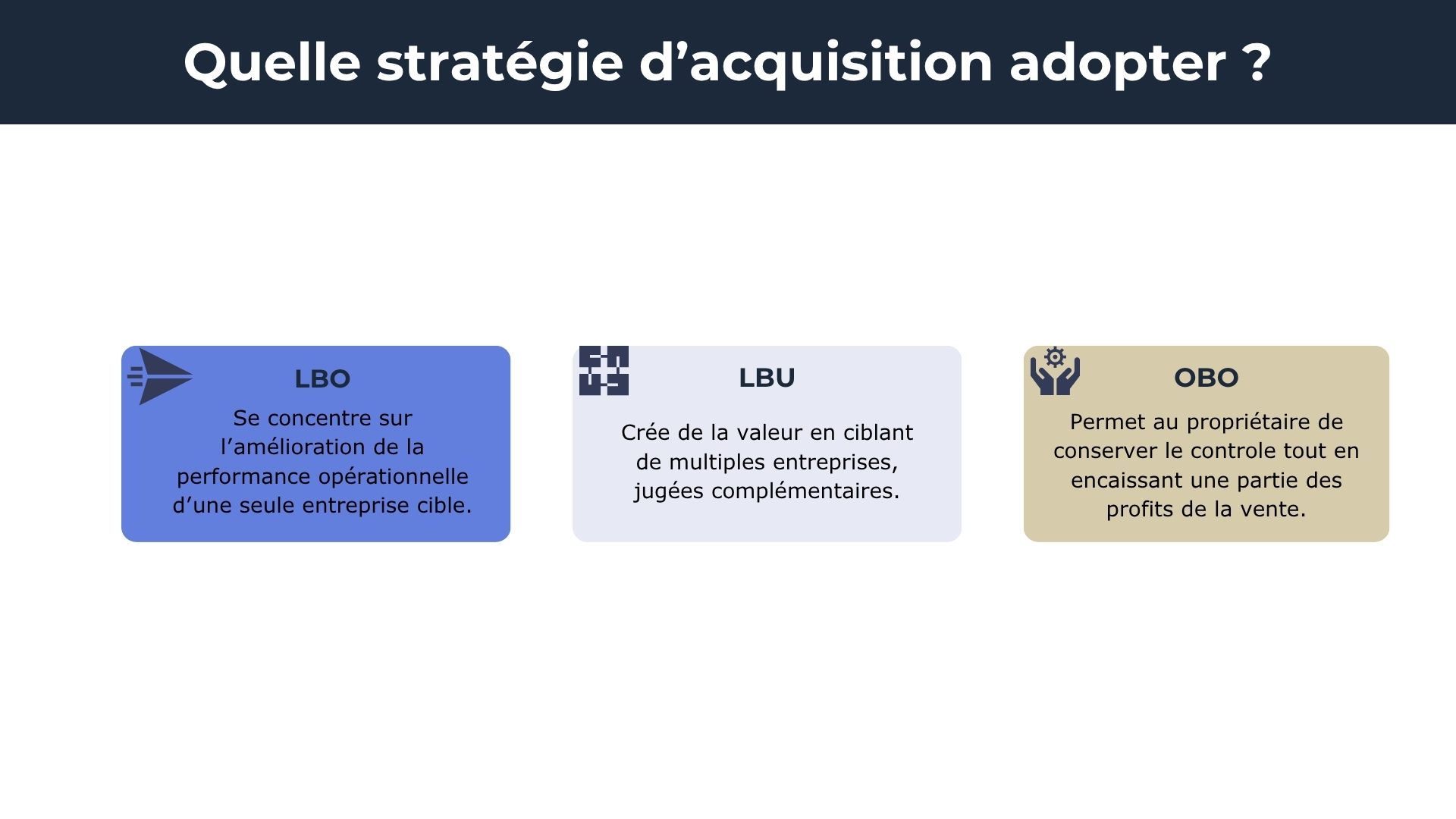 - Le LBU est guidé par l'ambition de redessiner le paysage concurrentiel d'un secteur par une stratégie de consolidation.